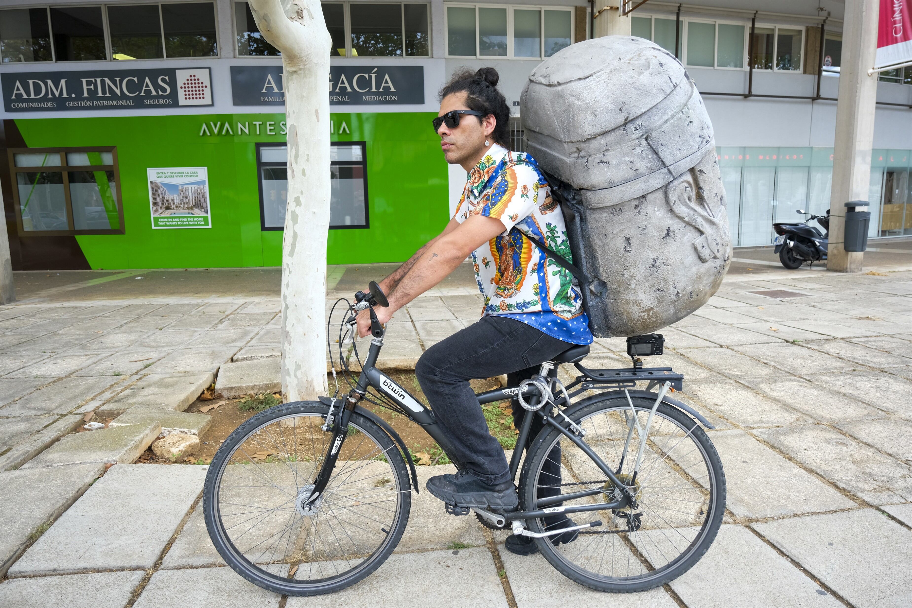 Igualmente, el artista ha destacado que 'Neotameme' es "una reinterpretación posmoderna de este símbolo, convirtiéndolo en una mochila de repartidor". Según puntualiza, el tameme era el encargado de llevar en sus hombros la mercancía.