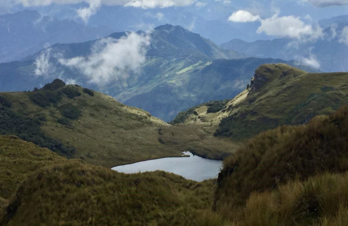 El equipo descubrió que el ecosistema actual de pastizales altoandinos, en la foto de arriba, era bastante diferente de los ecosistemas que se encuentran en otros interglaciares. En interglaciares anteriores, el lago estaba rodeado por una mezcla de pastizales y matorrales que se desarrollaron sin o con muy poco fuego.