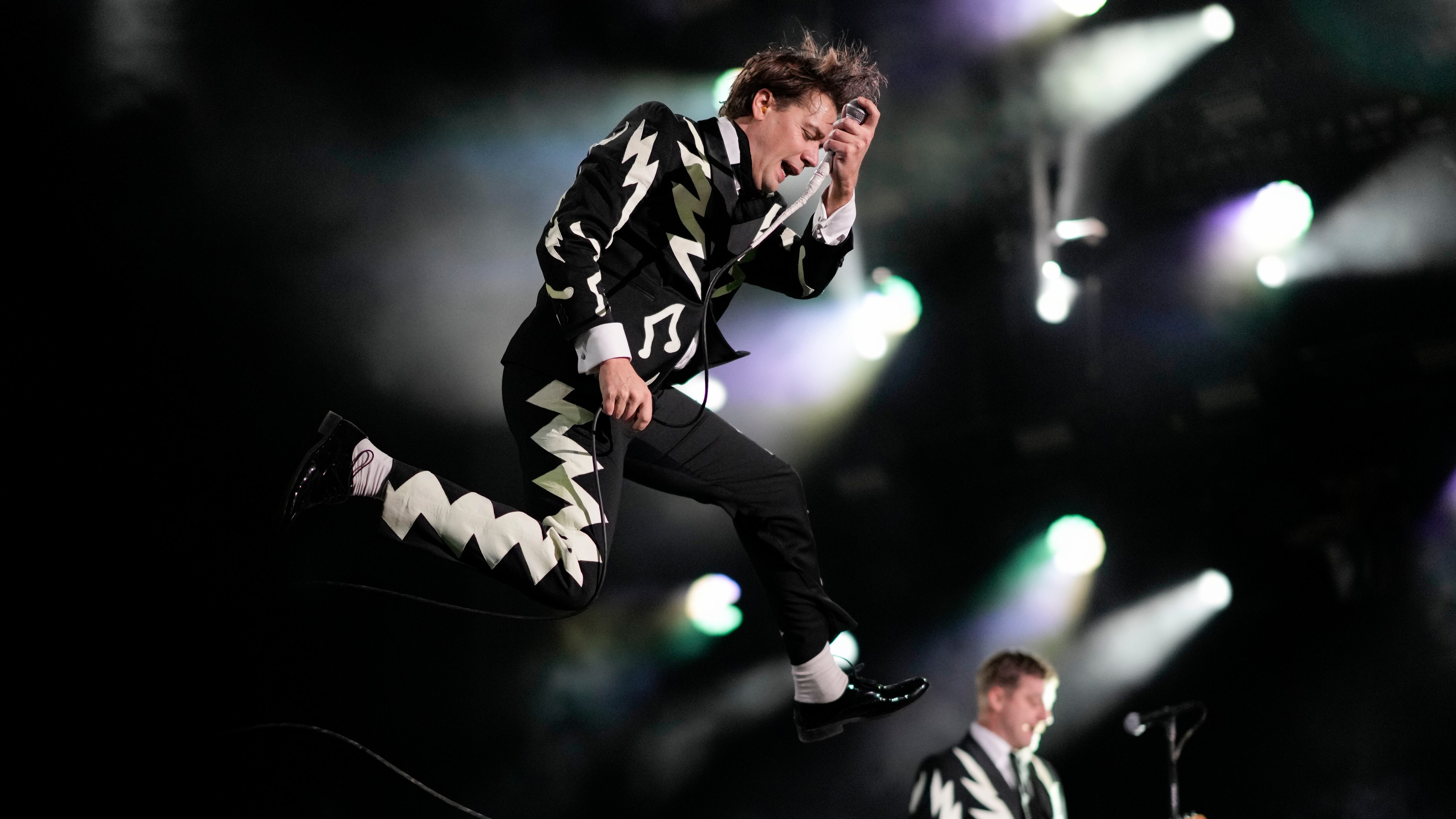 The Hives subieron al escenario principal con trajes sastres negros con rayos, tiras de triángulos y notas musicales blancos que pronosticaban la energía que se iba a descargar durante su concierto.