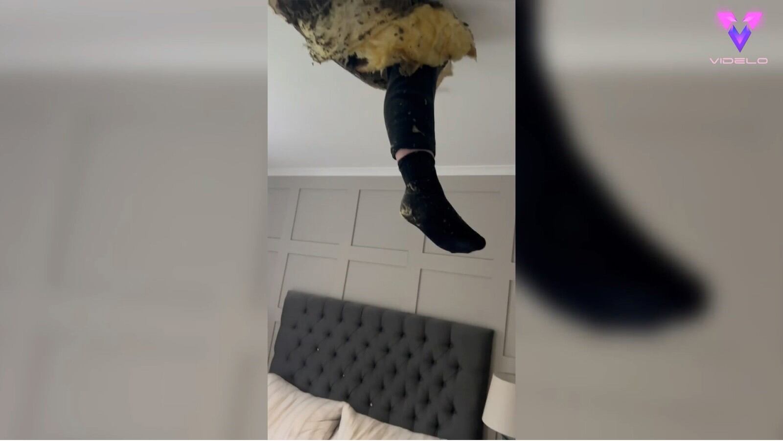 Presa del pánico, gritó pidiendo ayuda a su pareja: "Estaba bajando los adornos navideños y yo estaba al pie de la escalera mientras él me los pasaba. Mientras los ordenaba, oí un gran estruendo. Miré en nuestro dormitorio y ¡su pie colgaba del techo!"