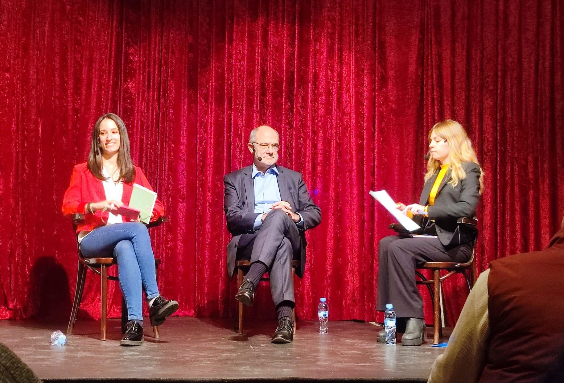 El portavoz del Parlamento Europeo (PE), Jaume Duch, y la periodista Estefanía Molina en un acto en el Teatreneu EUROPA PRESS (EUROPA PRESS/Europa Press)