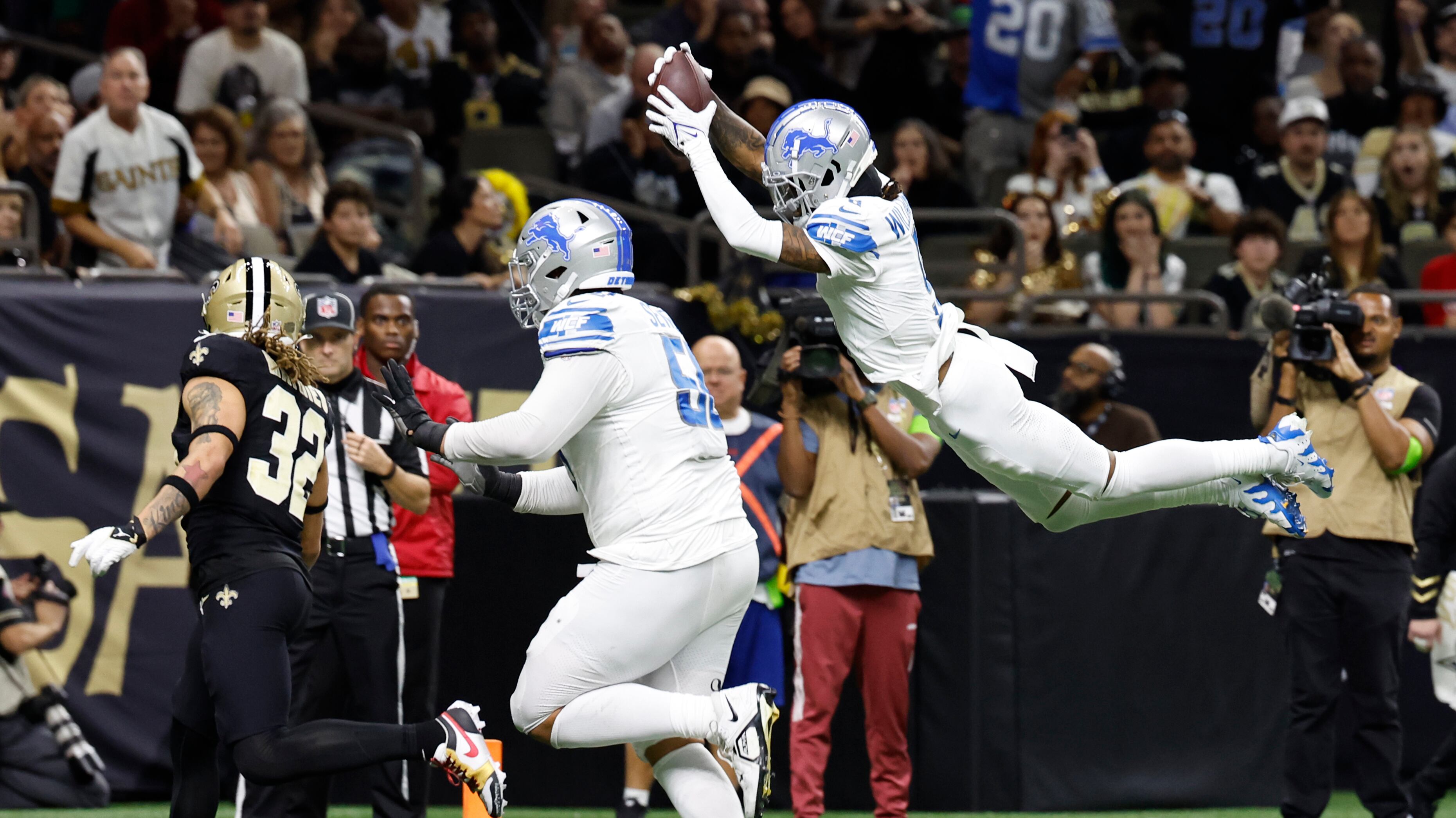 Jared Goff pasó para 213 yardas y dos anotaciones por los Lions (9-3), que se fueron rápidamente arriba por tres touchdowns y después resistieron una reacción brava de los Saints. Nueva Orleans (5-7) está un juego detrás del primer lugar de su división, la Sur de la NFC, Falcons de Atlanta, en el sector más flojo de la NFL.