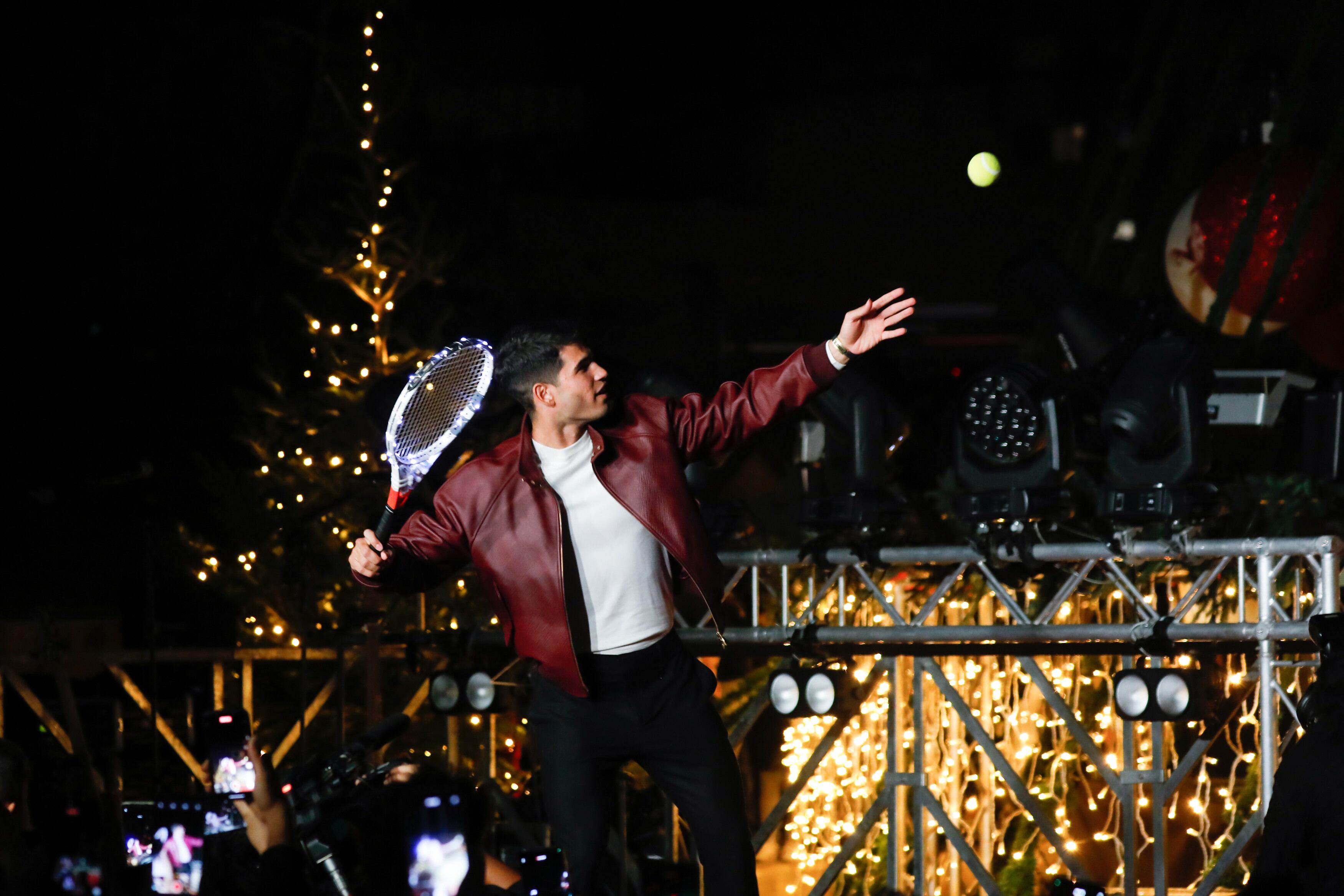 A todos los niños les ha pedido que "sueñen a lo grande", que "persigan su sueño sin miedo", porque "nada es imposible si le pones dedicación". "Es un orgullo cuando dicen por todo el mundo: Carlos Alcaraz, de Murcia, España", ha reconocido el tenista, antes de dar "un golpe mágico" con una raqueta "navideña" hacia la estrella del gran árbol, que ha dado inicio al encendido y al espectáculo pirotécnico y musical.