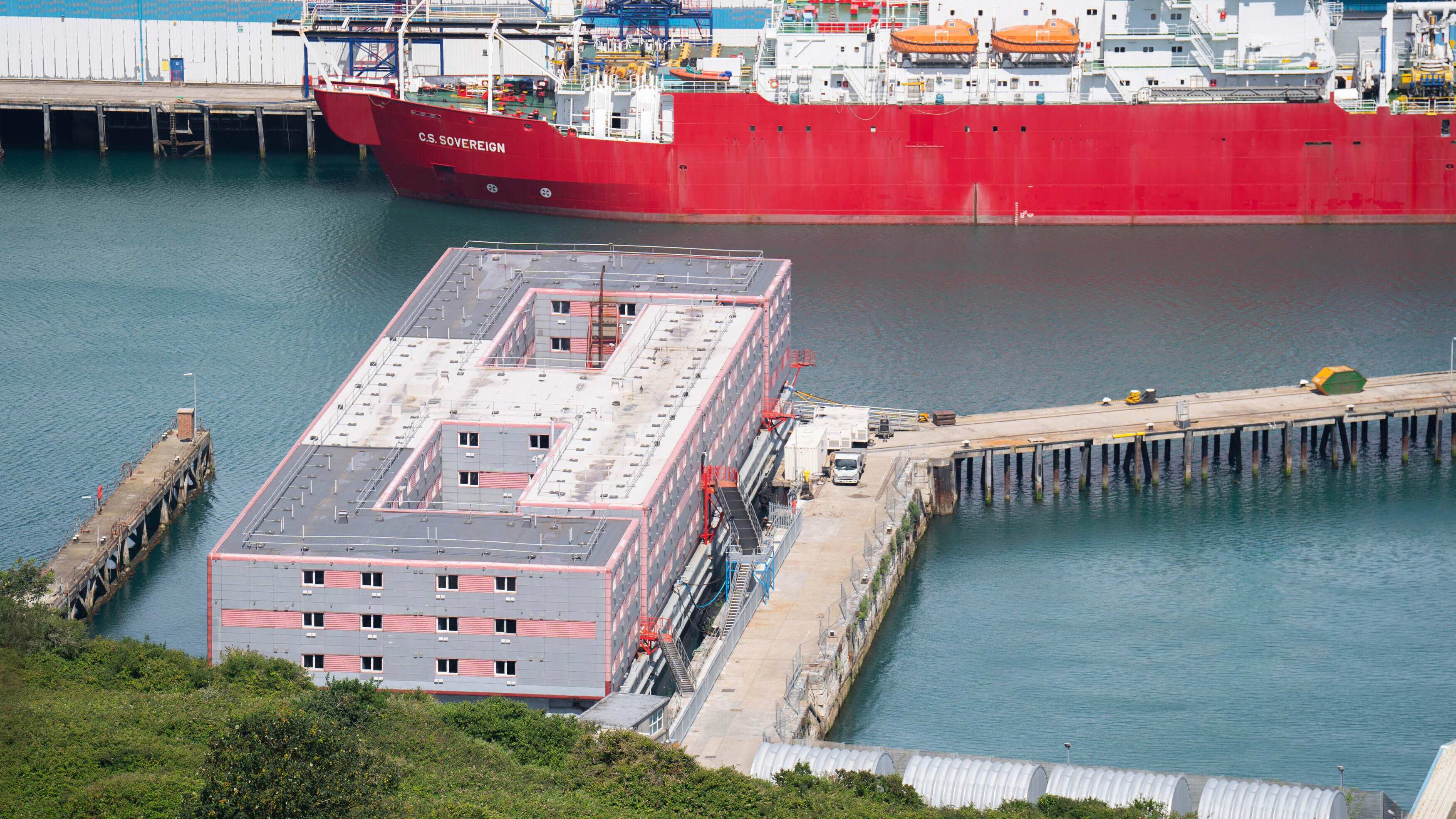 El centro flotante Bibby Stockholm ha sido objeto de polémicas desde que las autoridades empezaron a utilizarla como alojamiento de migrantes que aguardan respuesta a sus solicitudes de asilo.