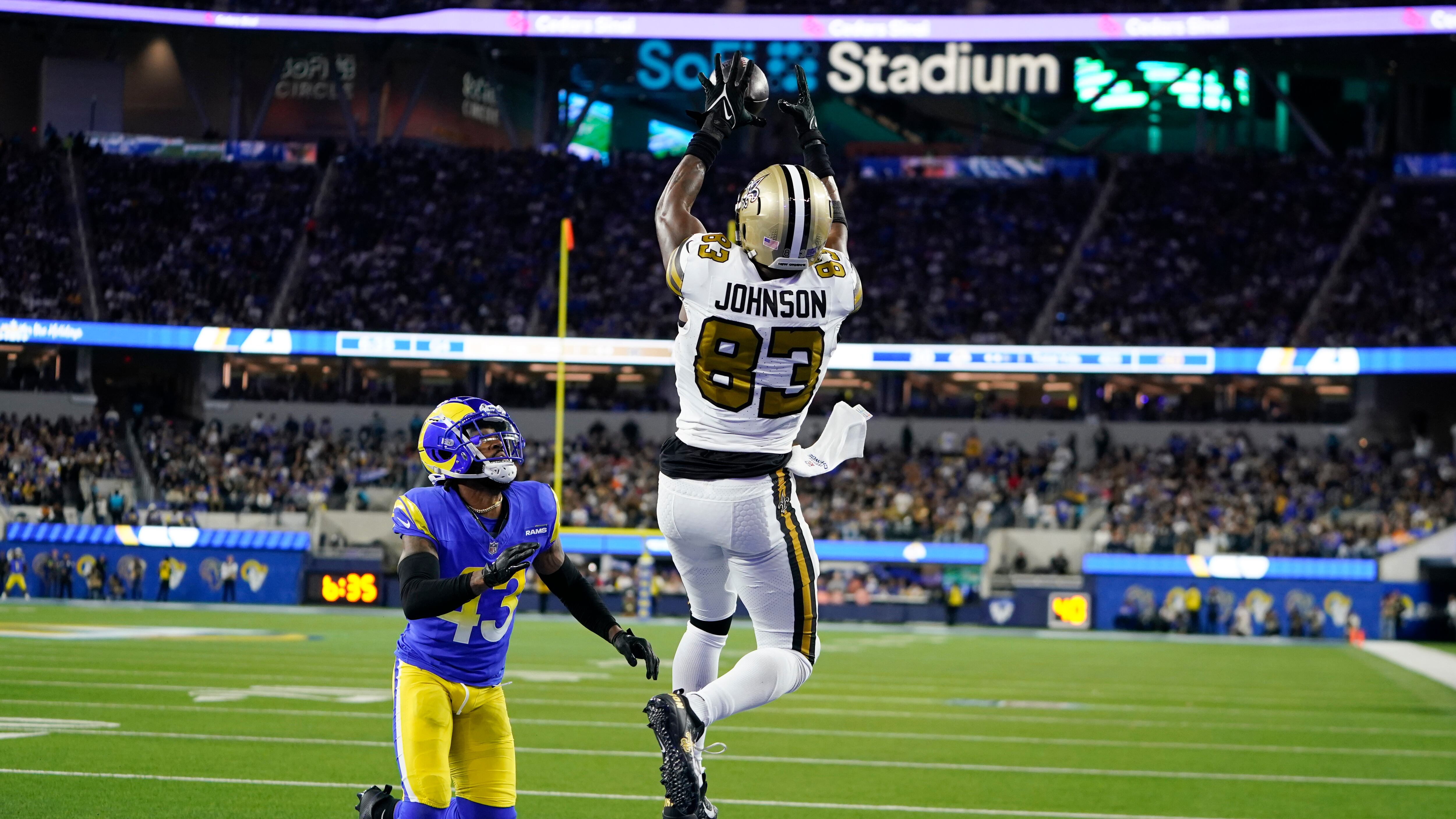 Pero dos de esos envíos llegaron cuando los Saints perdían ya por 23 puntos. Carr había lanzado para entonces un pase interceptado y no había sido capaz de convertir tres jugadas en cuarta oportunidad dentro del territorio de los Rams.