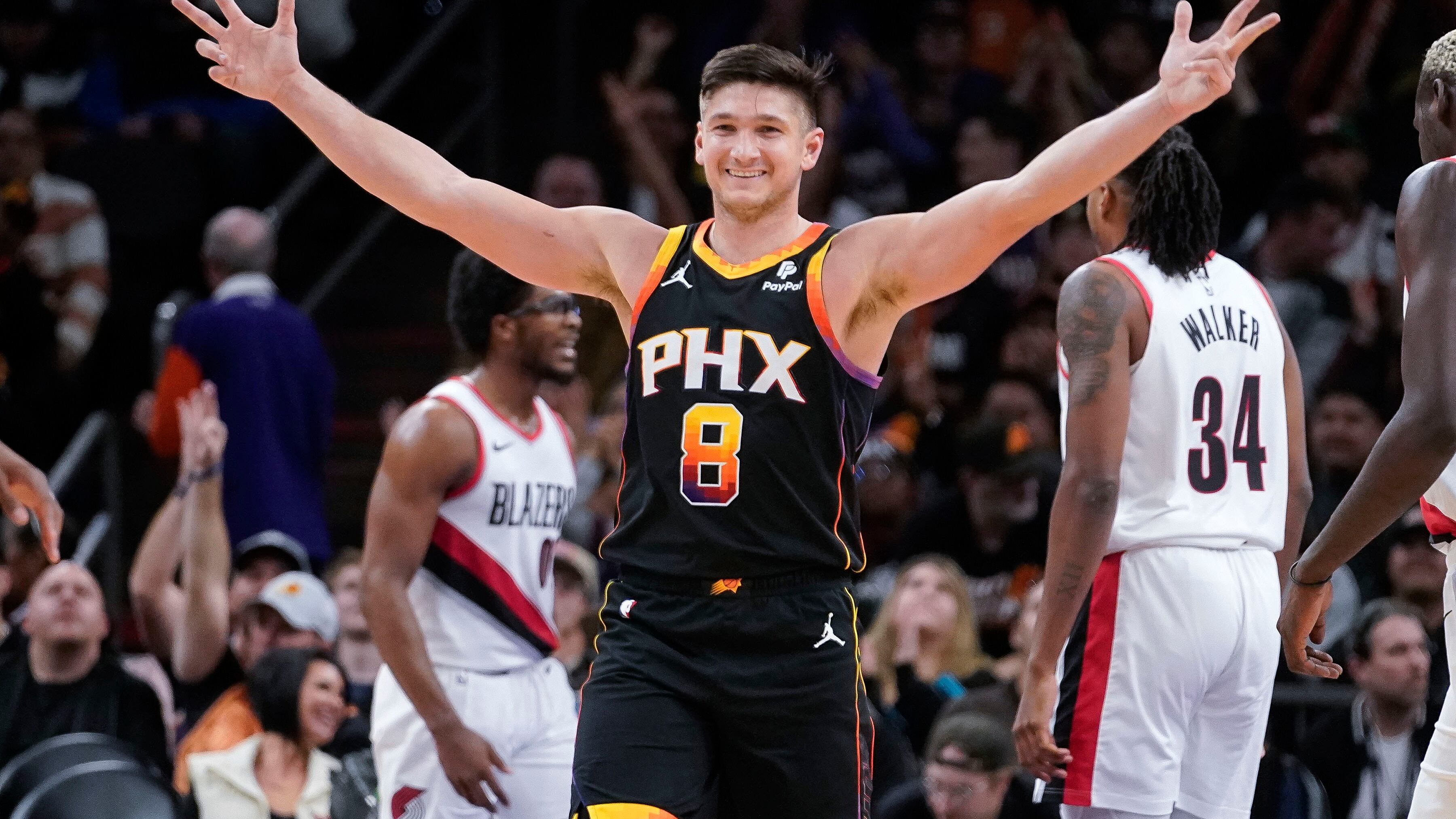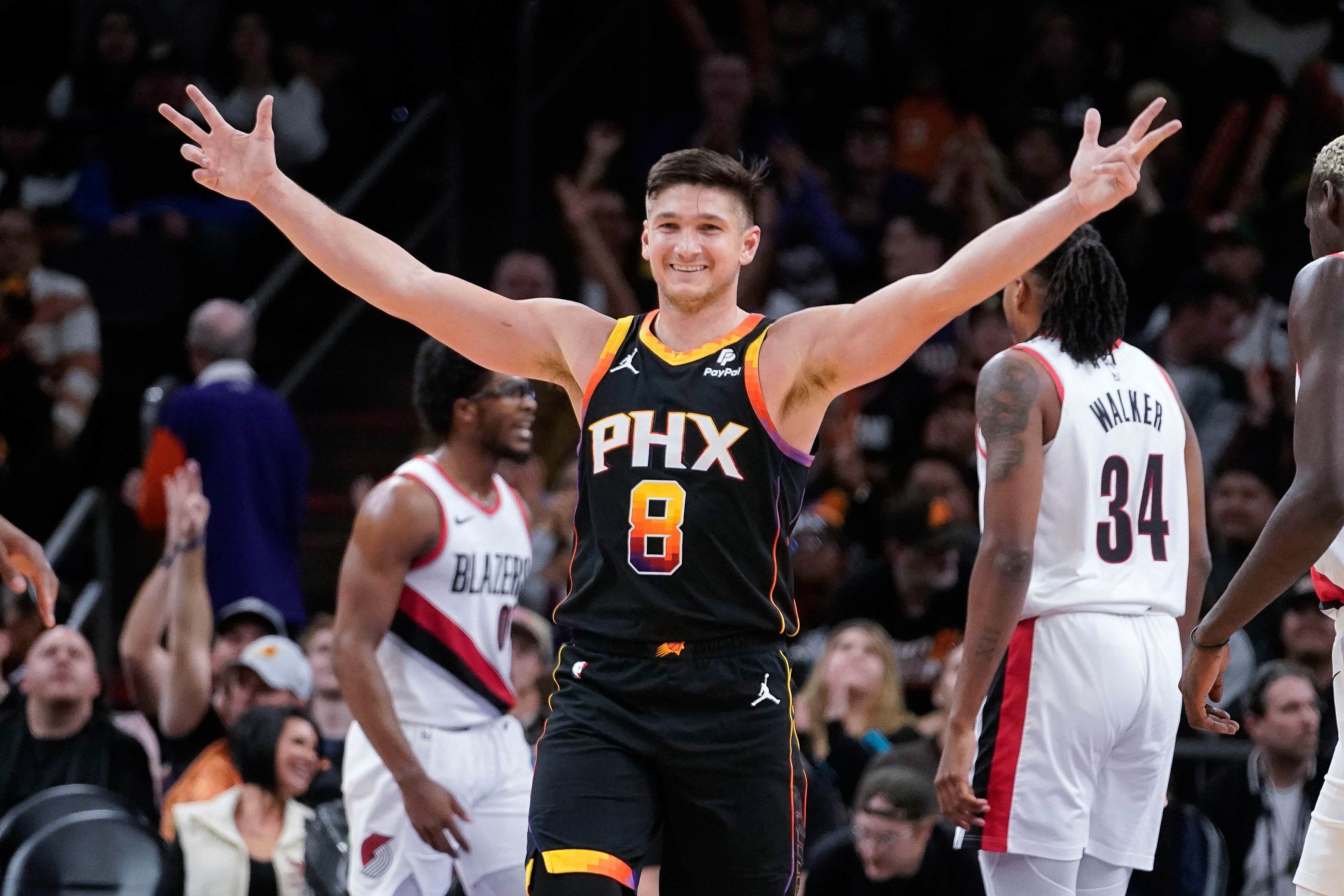 Con Kevin Durant marginado por una rigidez en el tendón de la corva derecho, los Suns tuvieron a siete jugadores con doble dígito de puntos. Jusuf Nurkic, jugando en contra de su exequipo, tuvo 18 unidades. Chimezie Metu, comenzando en lugar de Durant, anotó14, y Grayson Allen y el suplente Eric Gordon cada uno tuvo 12.