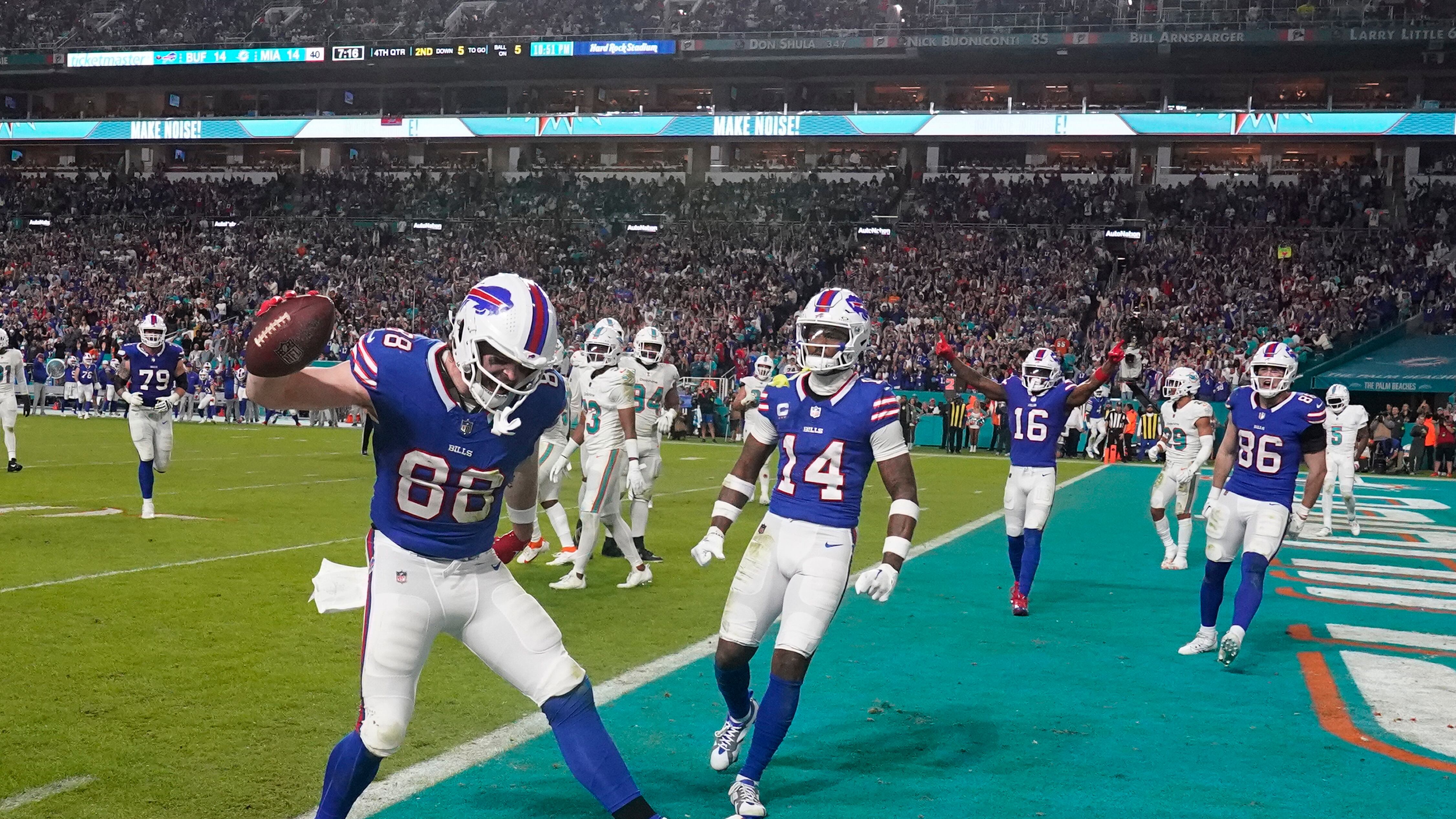 Buffalo forzó un tres y fuera de Miami, y Allen dirigió una serie de ocho jugadas y 74 yardas que coronó con su pase de anotación a Knox con 4:52 por jugar.