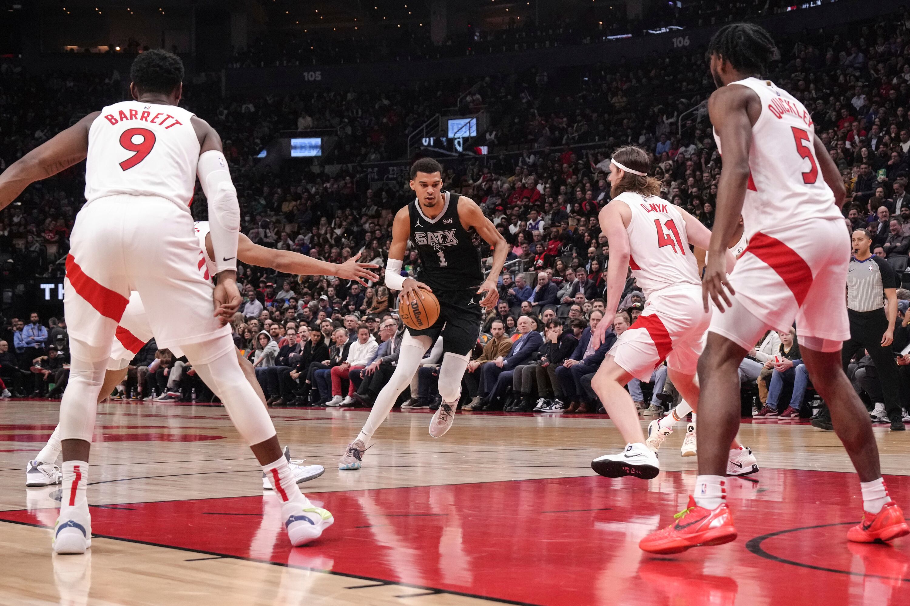 TORONTO (AP) — Victor Wembanyama anotó 27 puntos, bajó 14 rebotes y estableció marca en su carrera con 10 bloqueos en su segundo triple-doble, Devin Vassell añadió 25 unidades y los Spurs de San Antonio se libraron de su racha de siete derrotas al pasar por encima de los Raptors de Toronto 122-99 el lunes por la noche.