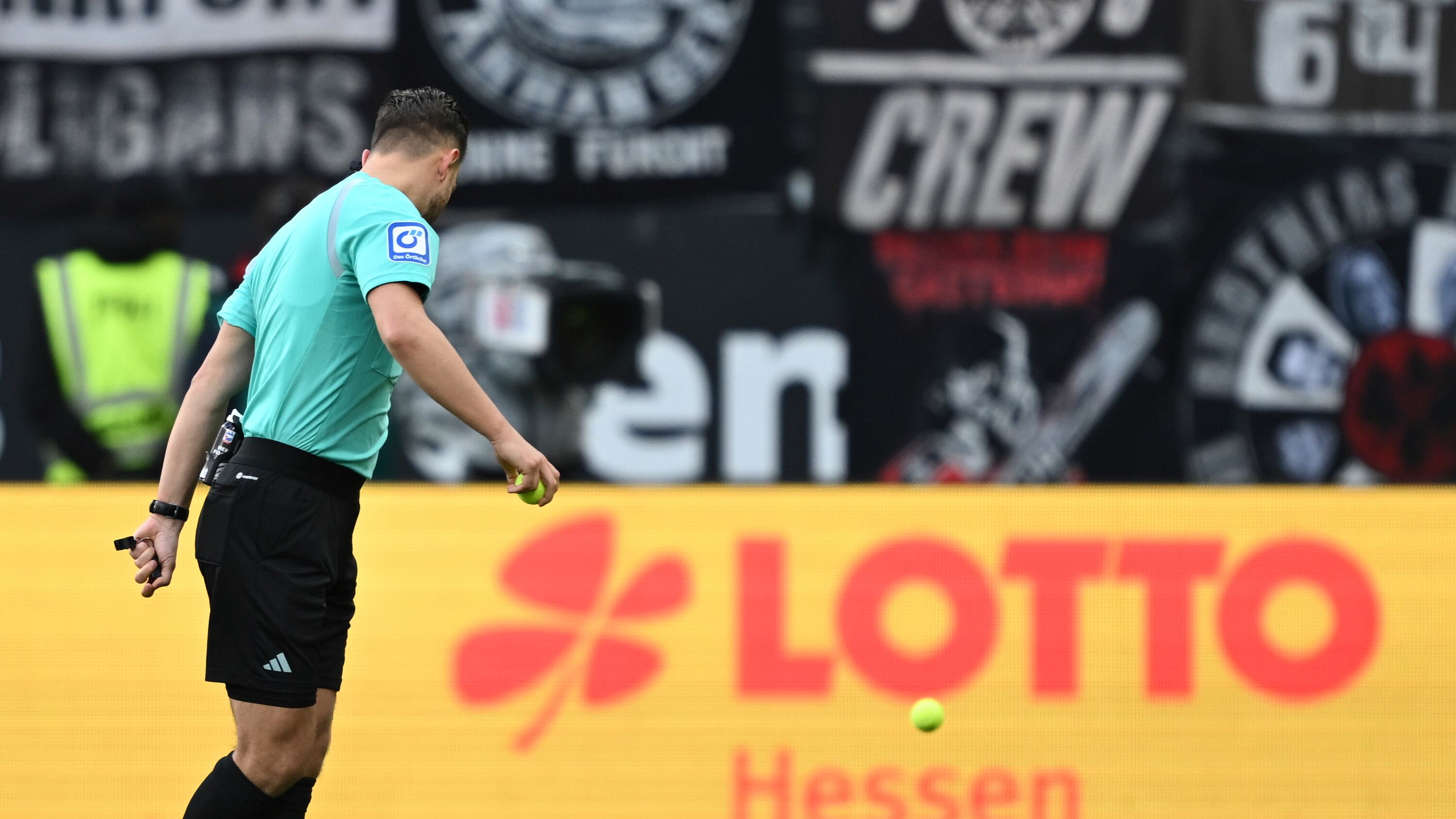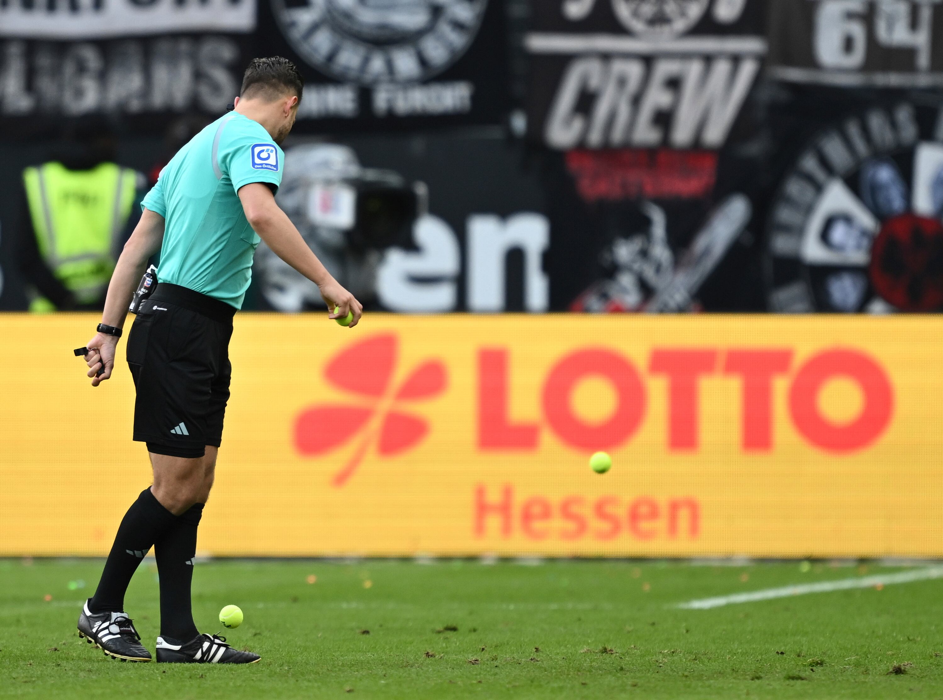 Wolfsburgo ganaba 2-1 y la segunda parte había iniciados apenas unos minutos antes que seguidores de Eintracht anzaron pequeñas bolas de plástico hacia el campo de juego detrás de uno de los arcos. Un cerdito de plástico también fue arrojado, cayendo al lado de uno de los postes de la portería.