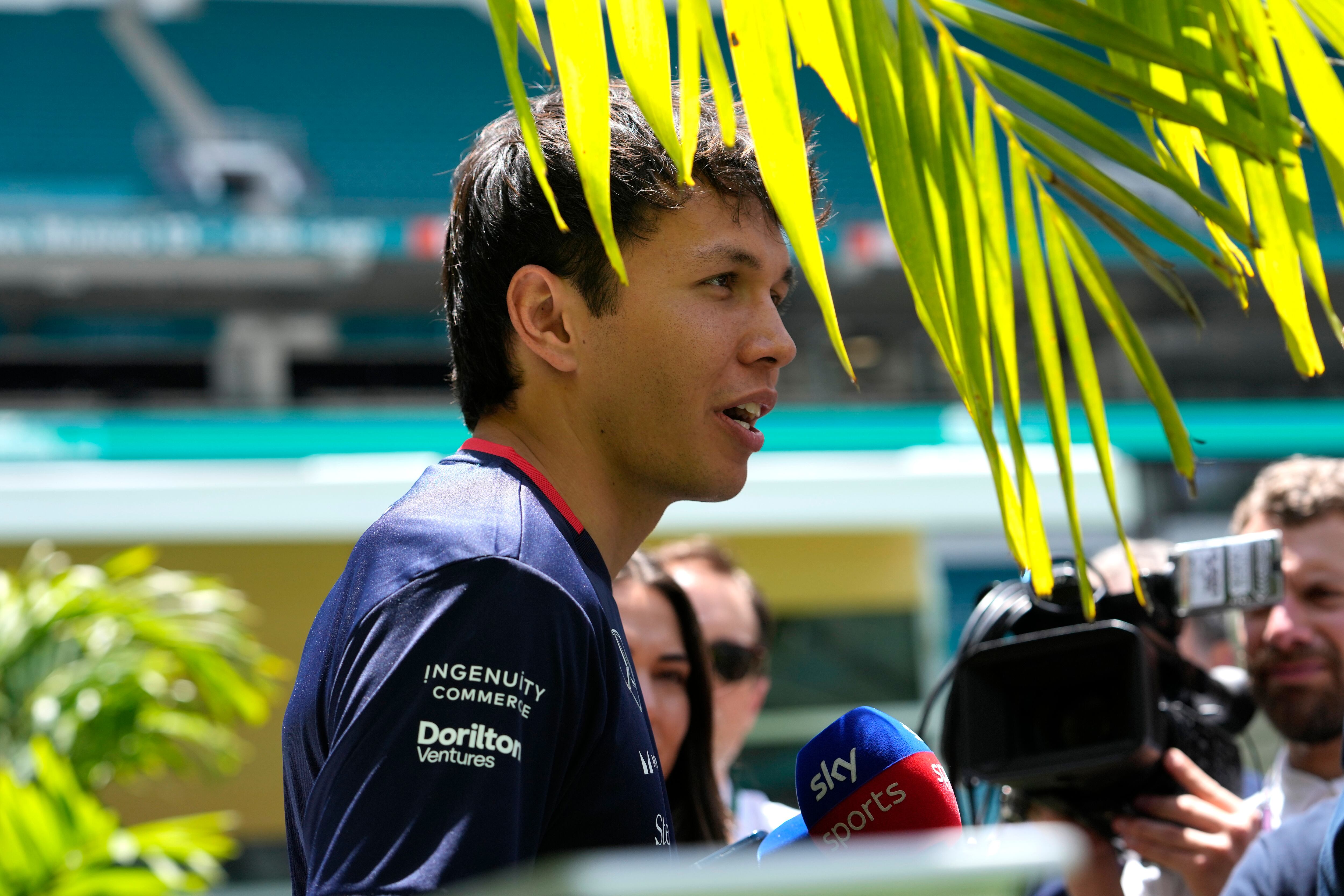 El piloto de Williams Alexander Albon charla con periodistas previo al Gran Premio de Miami de la Fórmula Uno, el 2 de mayo de 2024, en Miami Gardens, Florida. (AP Foto/Lynne Sladky) AP (Lynne Sladky/AP)