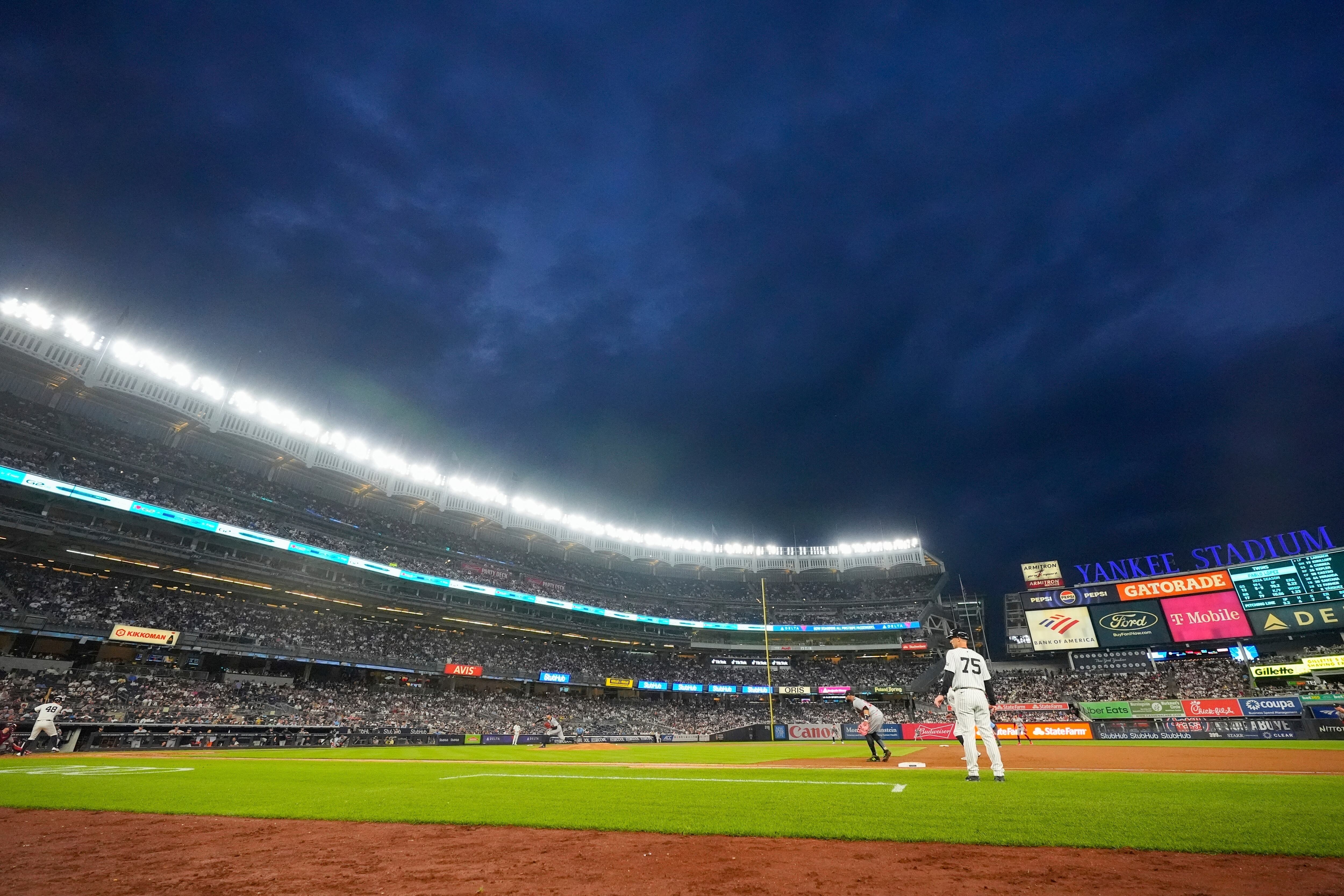 La mala noticia para los Yankees fue que su toletero dominicano Juan Soto tuvo que salir del juego por una molestia en el antebrazo izquierdo después de un retraso de 56 minutos por lluvia previo al sexto inning.