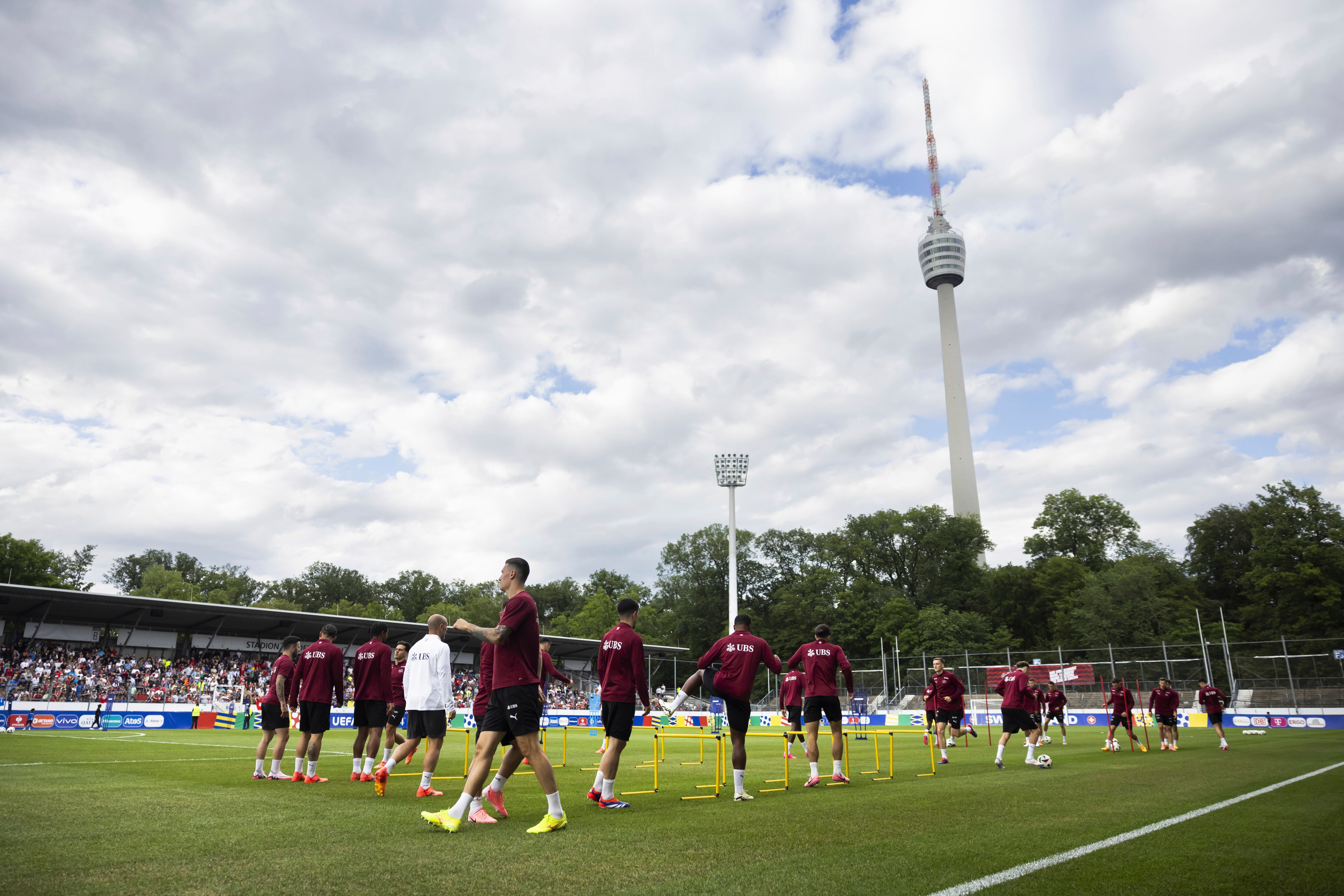 El seleccionado suizo entrenó el lunes por primera vez en el estadio del Stuttgarter Kickers, de la cuarta división alemana, en donde instalaron un césped nuevo antes del torneo que inicia el viernes.