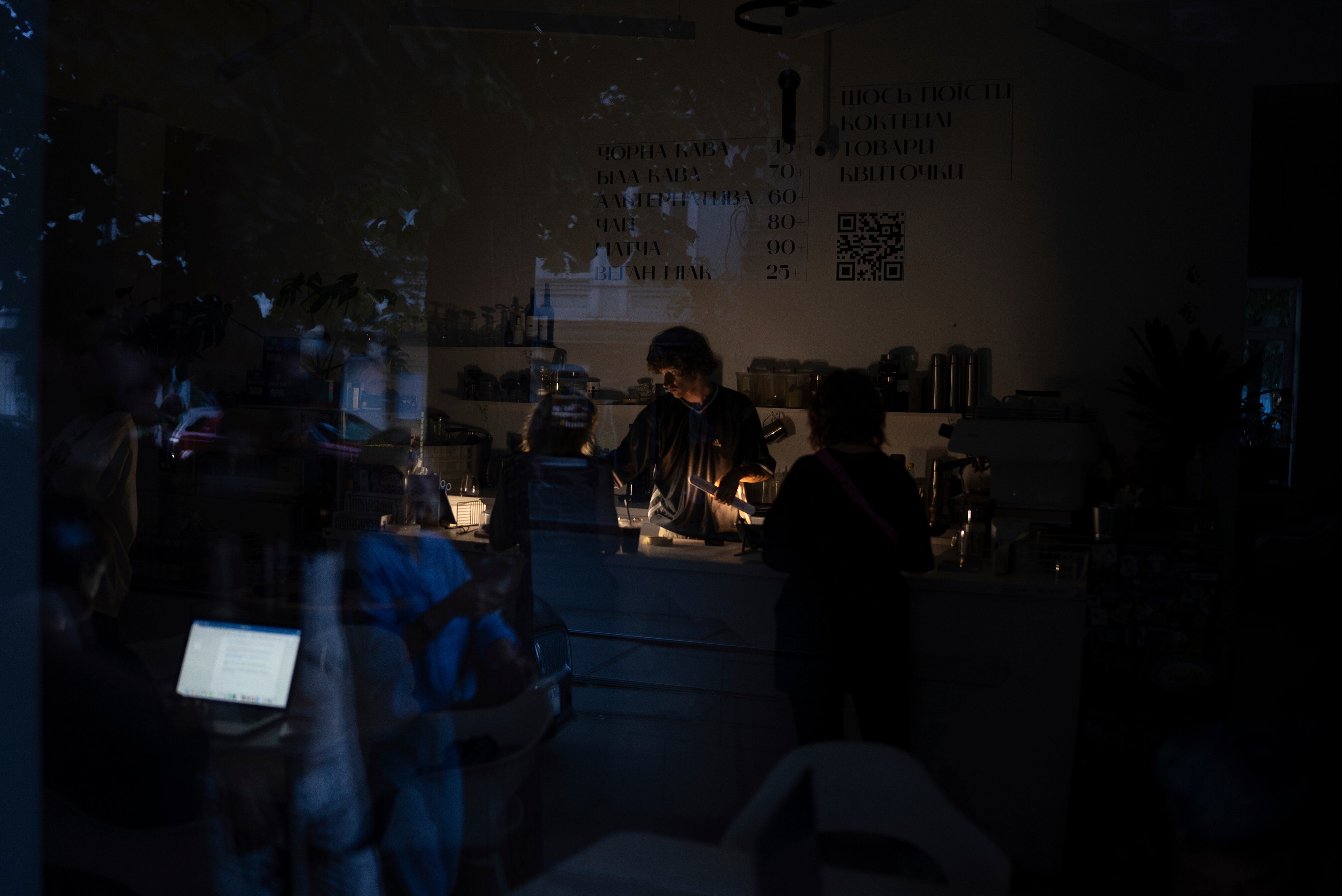Un empleado de un café durante un apagón en Kiev, Ucrania, el 7 de junio del 2024. (Foto AP /Alex Babenko) AP (Alex Babenko/AP)