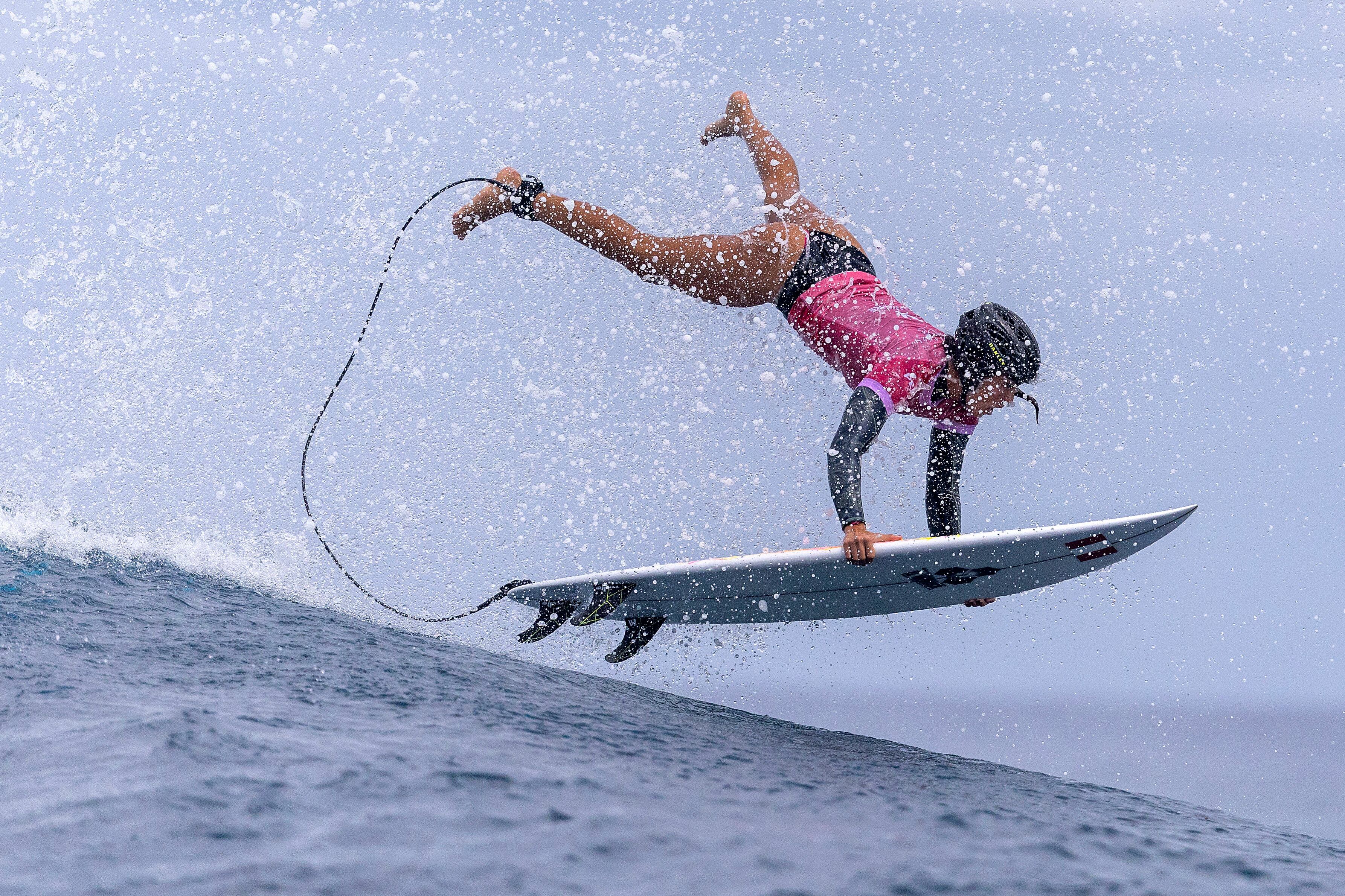 “Esta mañana, me levanté con escalofríos por la emoción y un poco nerviosa”, dijo la surfista polinesia francesa Vahine Fierro. “Pero una vez que toqué el agua, me sentí realmente cómoda”.