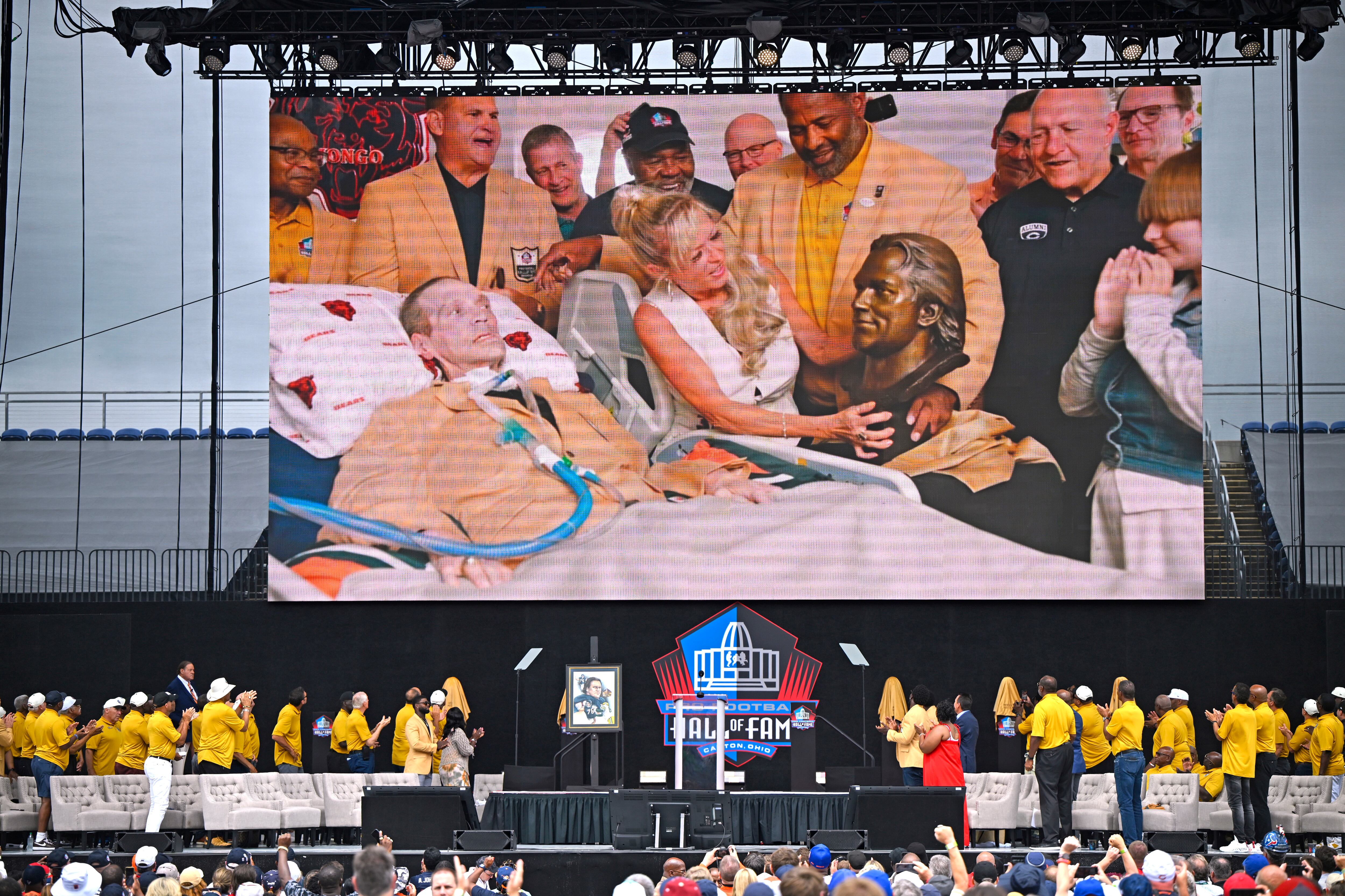 Jim McMahon, quarterback del equipo campeón del Super Bowl de los Bears de 1985, observó la escena en video en persona desde el estadio Tom Benson en Canton, Ohio. Varios seguidores del equipo derramaron lágrimas al observar a McMichael.