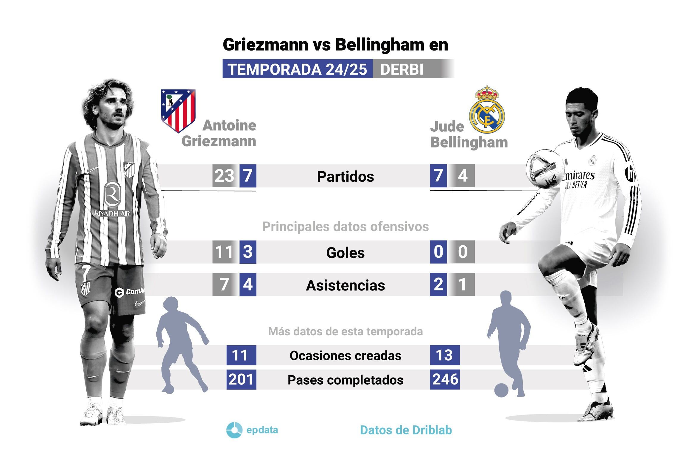 Griezmann vs Bellingham, en datos. EPDATA