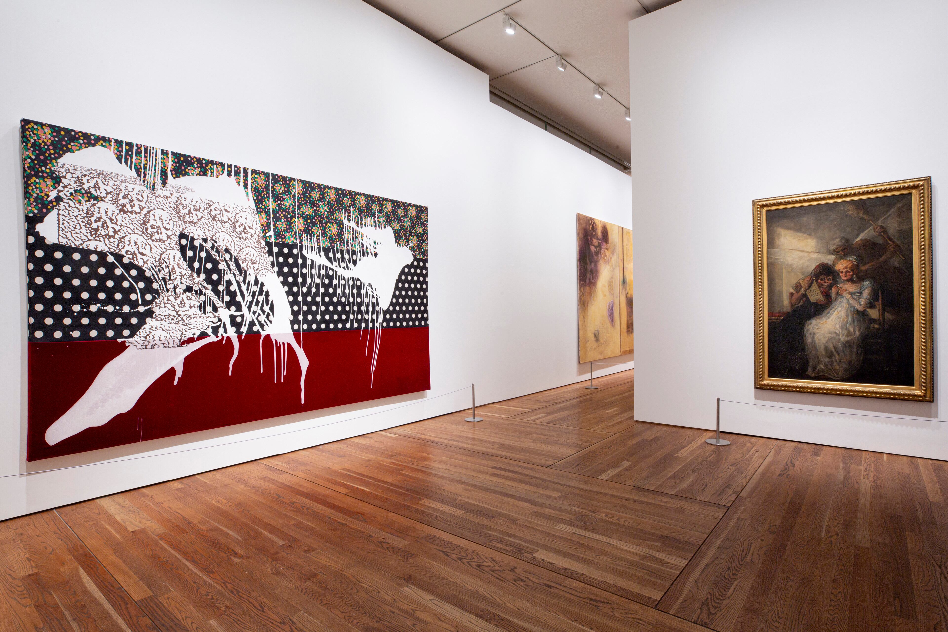 Esta exposición reúne pinturas, fotografías y dibujos de Polke, junto al cuadro 'Las viejas o El Tiempo' (1810-12) de Goya perteneciente al Museo de Lille, que se presenta por primera vez en España junto a su radiografía, una imagen que desvela composiciones que atrajeron de manera especial a Polke, obras que se encuentran justo al principio del recorrido.