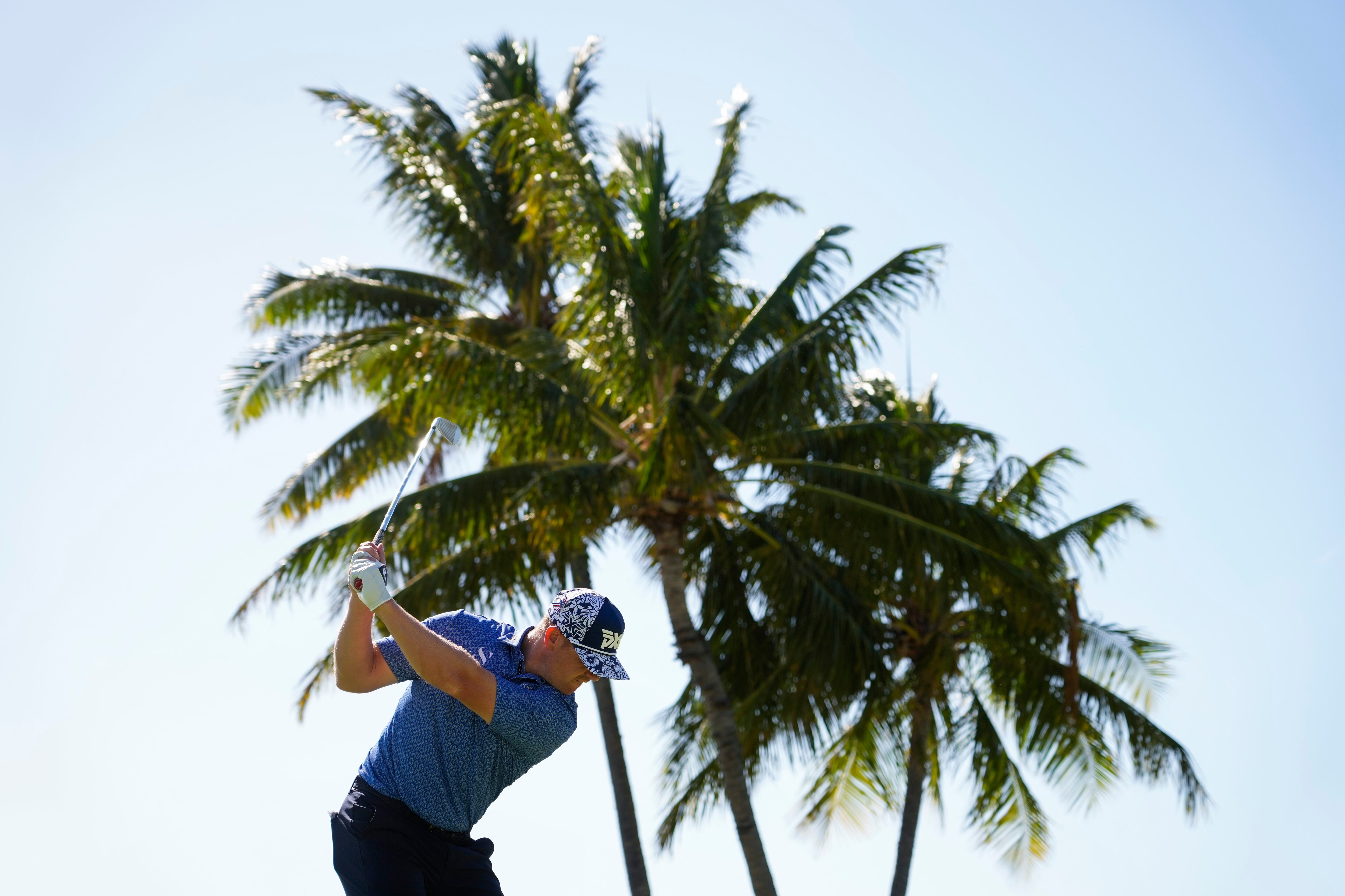 Patrick Fishburn hace su tiro de salida al hoyo 17 en la segunda ronda del Sony Open, el viernes 10 de enero de 2025, en Honolulú (AP Foto/Matt York) AP (Matt York/AP)