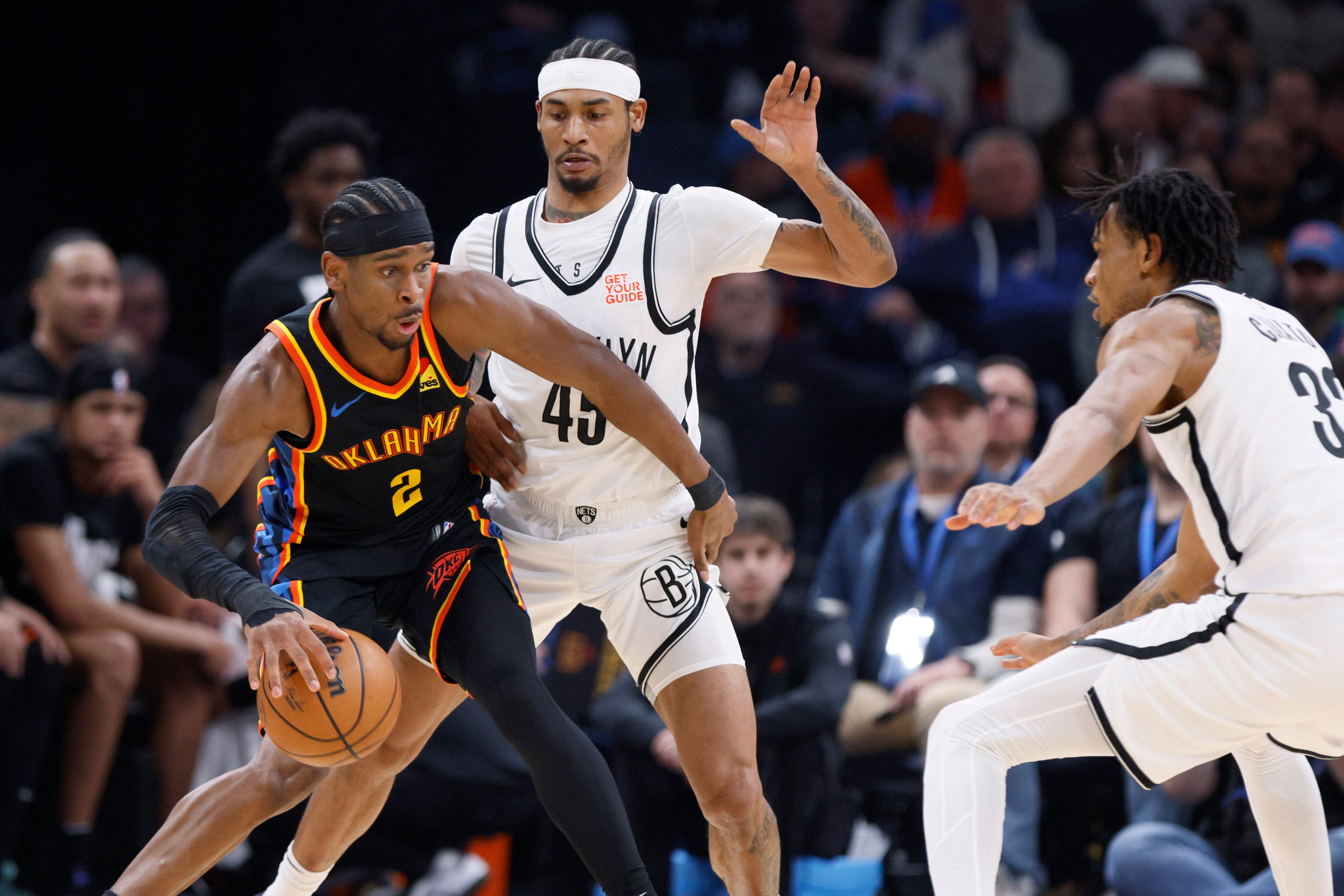 Gilgeous-Alexander, el máximo anotador de la NBA, no jugó el viernes en la derrota ante Dallas debido a un esguince en la muñeca derecha, en cambio contra los Nets encestó 8 de 14 tiros de campo y acertó sus 10 intentos de tiros libres. También logró cuatro robos.
