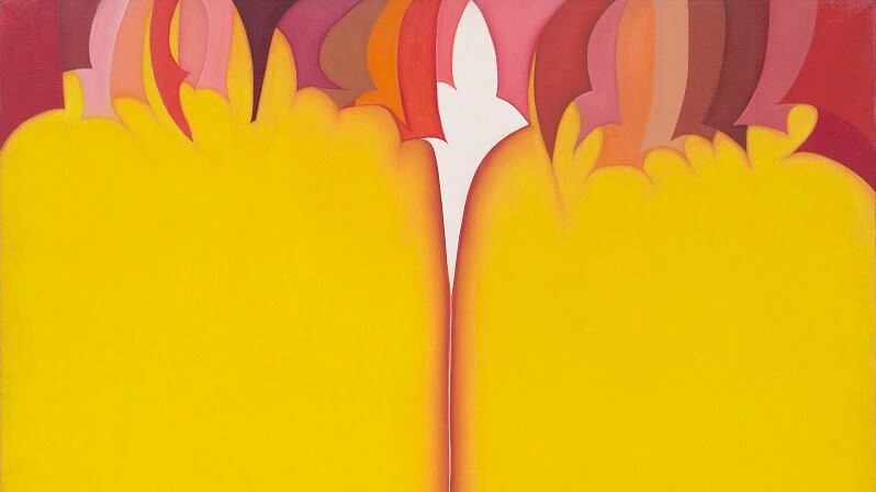 'Huguette Caland: Una vida en pocas líneas' --nombre que recibe de un lienzo homónimo que dedicó a su marido y que no ha podido formar parte de la muestra por estar en Líbano-- está organizada en 12 salas de forma cronológica con las que se reflejan las preocupaciones feministas o deseos de la artista como el envejecimiento en las mujeres o las migraciones a través de lienzos de colores y formas llamativos y collages con cartas de amor.