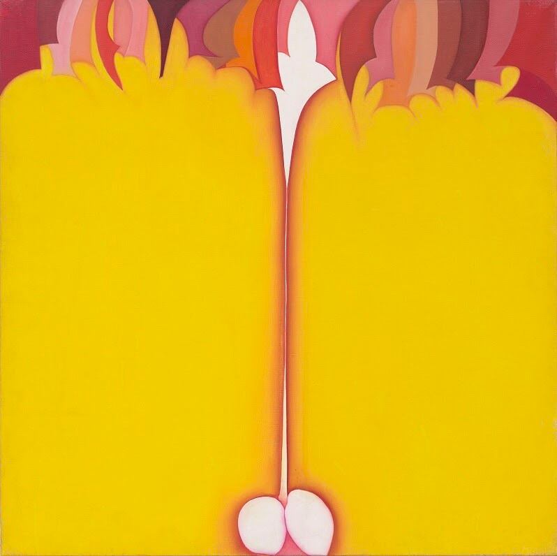'Huguette Caland: Una vida en pocas líneas' --nombre que recibe de un lienzo homónimo que dedicó a su marido y que no ha podido formar parte de la muestra por estar en Líbano-- está organizada en 12 salas de forma cronológica con las que se reflejan las preocupaciones feministas o deseos de la artista como el envejecimiento en las mujeres o las migraciones a través de lienzos de colores y formas llamativos y collages con cartas de amor.