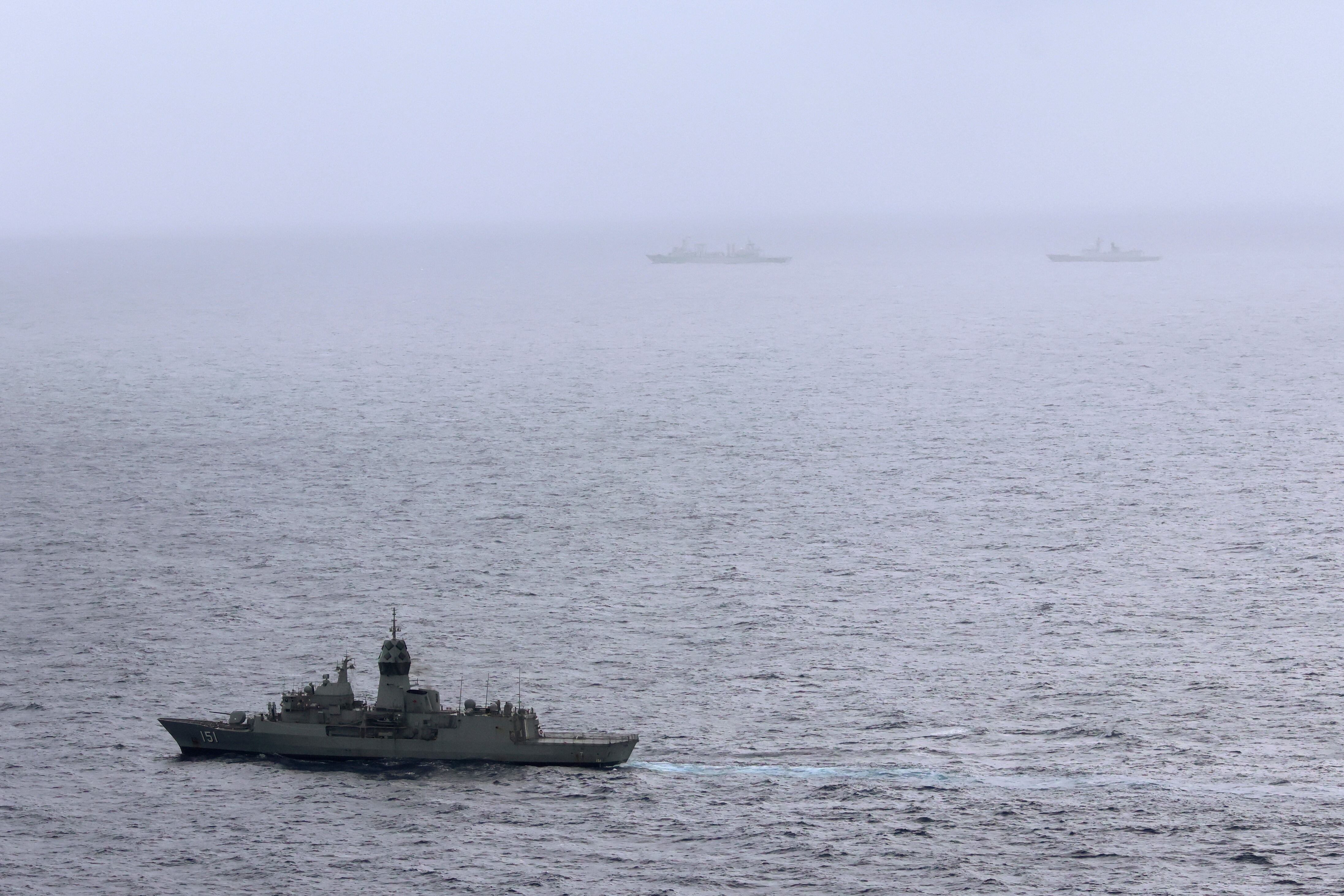 Buques y aviones militares australianos llevan días monitoreando a los buques de guerra chinos a su paso por las aguas internacionales frente a la costa este de Australia.