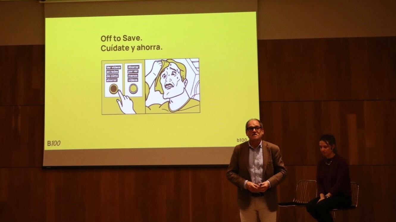"Ahora nuestros clientes pueden ahorrar simplemente desconectándose de redes sociales un rato cada día", ha expresado Jorge Mahía, director ejecutivo de B100, en la presentación de 'Off to Save', que ha tenido en el Museo Arqueológico Nacional ubicado en Madrid.